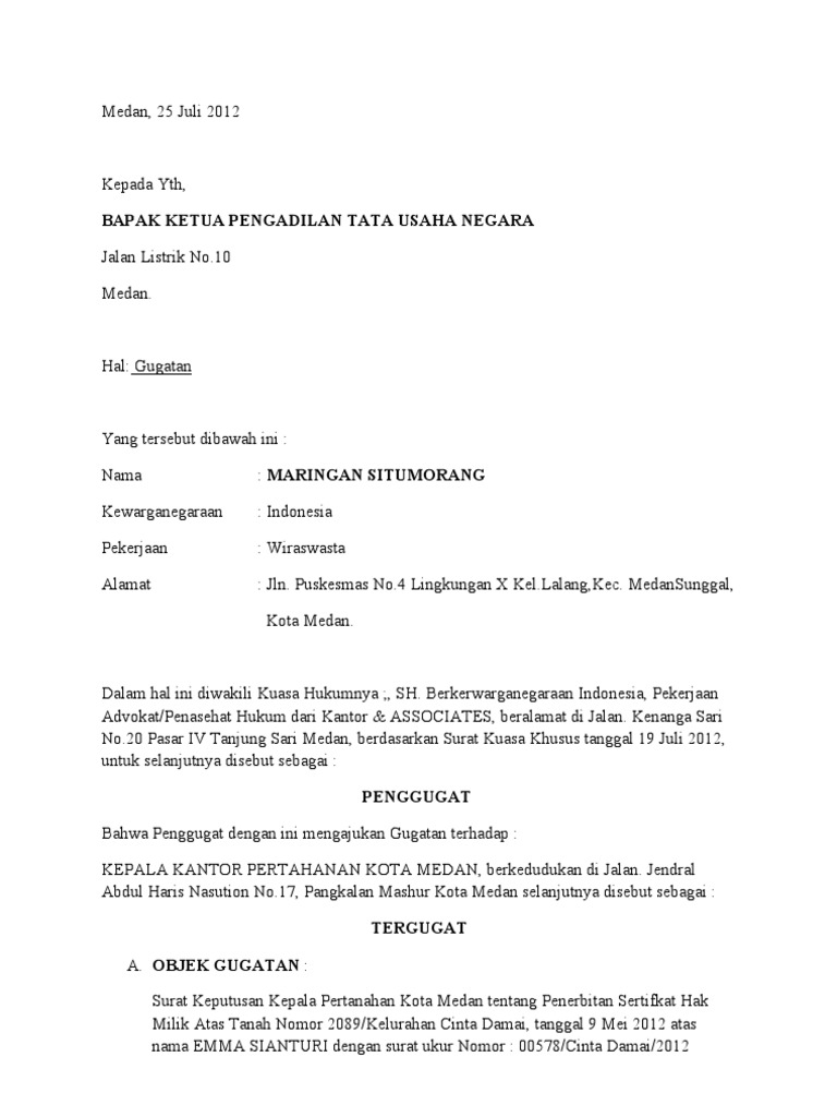 Beberapa contoh surat kuasa di ptun terbaik 2019. Contoh model surat kuasa penggugat orang ptun. Format contoh surat kuasa khusus penggugat yang baik 2019. Contoh permohonan berdasarkan pasal 53 uu ap. 821 2 kep 007 dinpen 2013 tanggal 22 april 2013 penggugat mengajukan keberatan kepada kepala dinas pendidikan kota medan melalui sekretaris umum pada tanggal 24 april 2013.